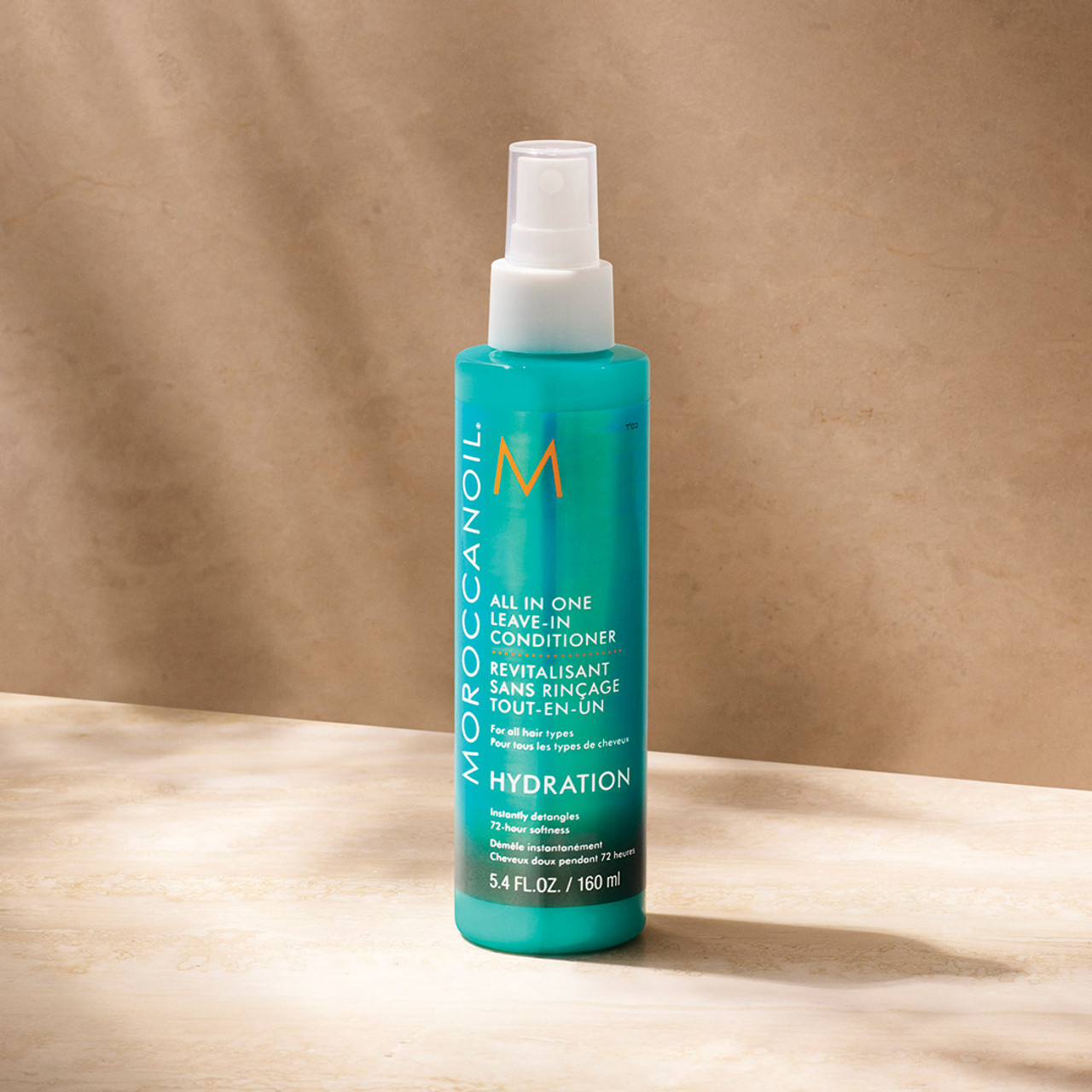 Moroccanoil All In One Leave-In Conditioner este un balsam spray fără clătire, cu acțiune hidratantă, protectoare și reparatorie, potrivit pentru toate tipurile de păr. Formula sa ultra-lejeră, dar performantă, descurcă instant părul, îl lasă moale, ușor de coafat și îl protejează împotriva agresiunilor zilnice precum căldura, poluarea sau factorii mecanici.